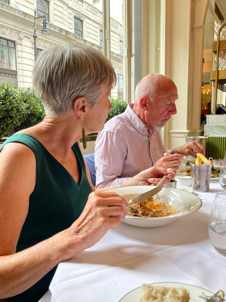 Lunch was booked at Langan’s Brasserie, a 10 minute stroll down Piccadilly. Except, of course, it wasn’t 10 minutes or a stroll for Sharon. She was absolutely frazzled by the time we got there.