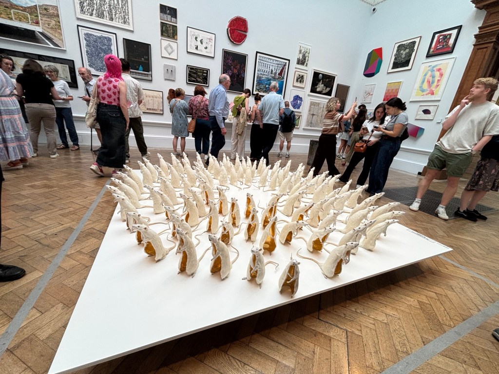 We met up with Pete’s sister Jayne & husband Mark and brother Simon and wife Tabby. The first time we’ve met up in a couple of years. We all took our time wandering the galleries, admiring or scorning the myriad artworks on display. The Summer Exhibition is one of those English events that punctuate the social calendar.