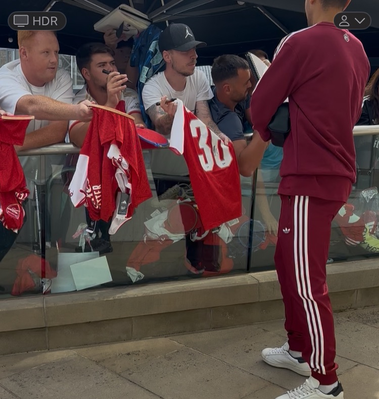 In 2023 we were walking from the English Channel to Scotland. On the Thames Path, near Docklands Sharon engaged in banter with the West Ham United squad. As we left the Islington Hilton so did the Arsenal football team. Headed for a pre-season friendly against Villarreal.