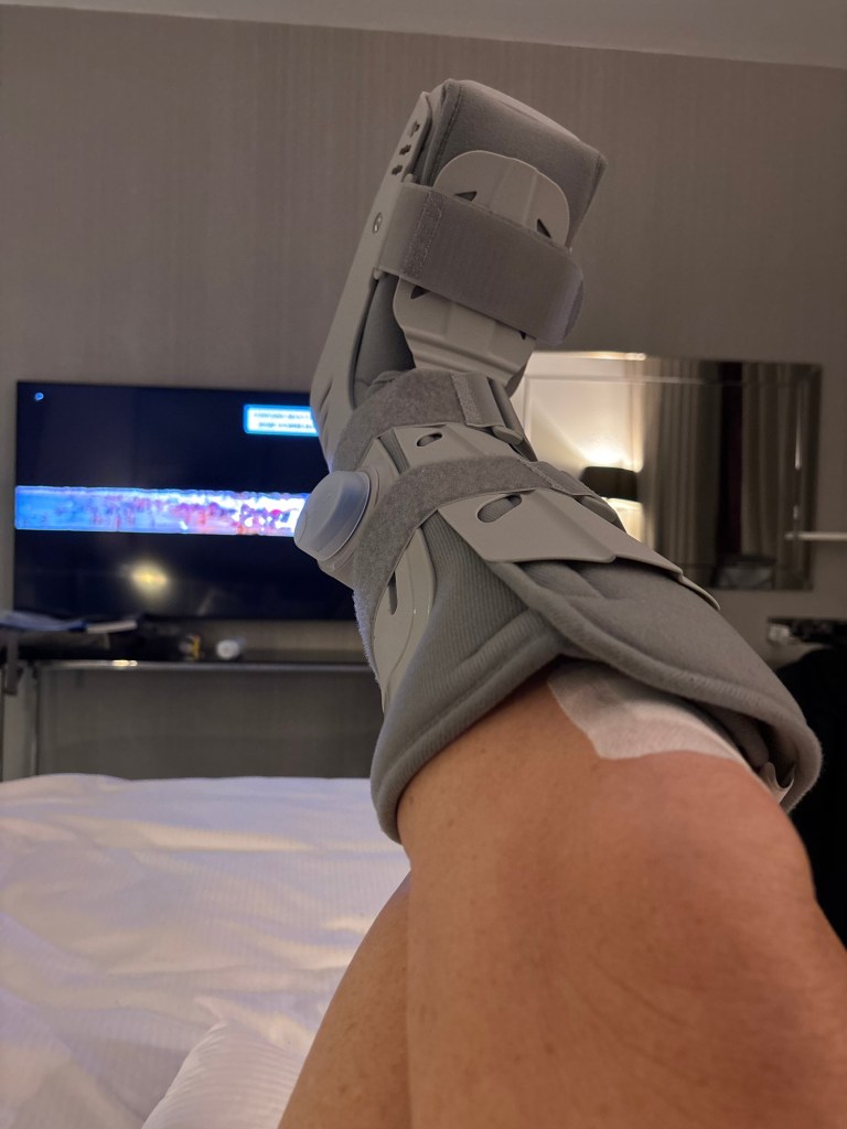 Jeez, the NHS is good. A 5.30pm appointment. Cut the cast off. Go for an X-Ray. Meet the surgeon. Clear analysis. Bit of banter about his OE in Nelson. Moon boot fitting. Out by 6.20pm.